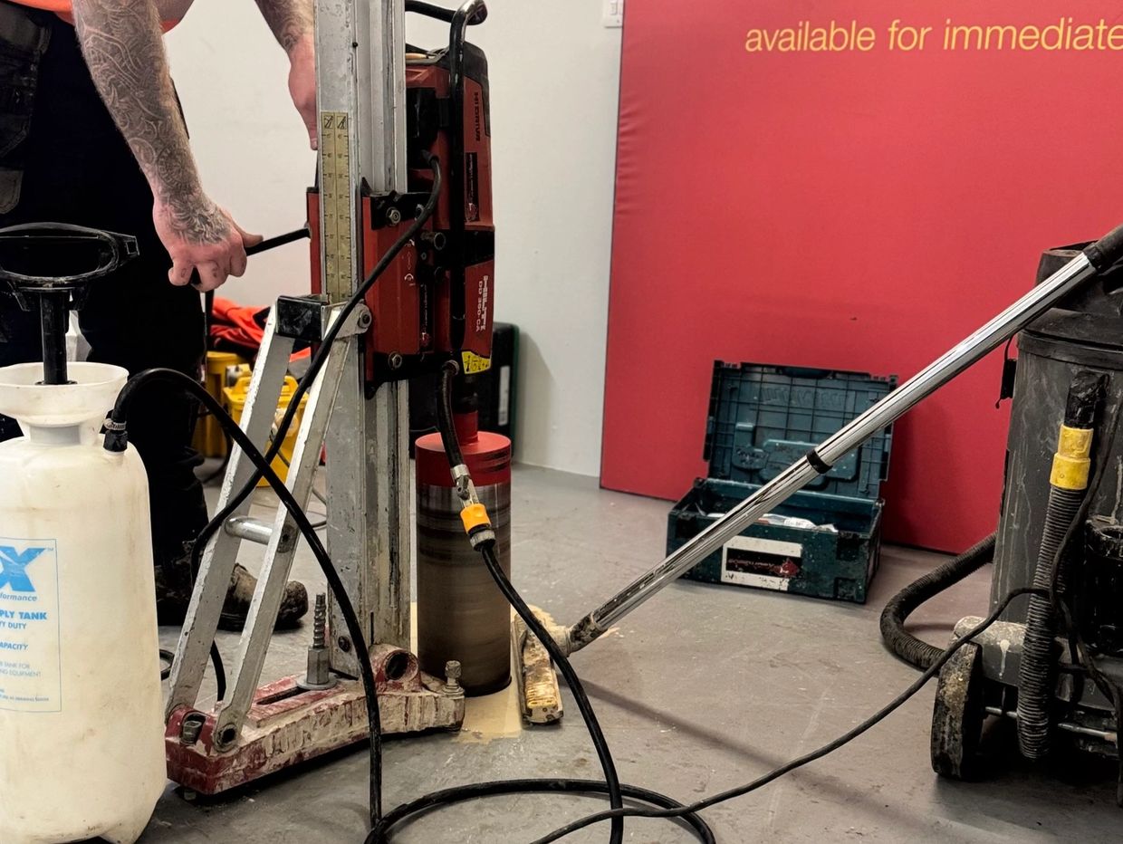 One of our most important tasks on site is to maintain good housekeeping. Some of the tools we use that ensure we achieve this goal are the use of wet vac and fume extraction. The wet vac is an essential tool when coring to ensure the area remains clean and tidy. Our fume extraction can extract harmful fumes up to 30metres as standard (more can be provided if required), which is essential when working in enclosed spaces, protecting the health of our operatives working in the area.